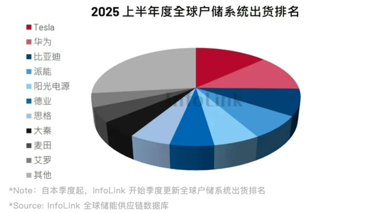据InfoLink统计,2025年上半年全球户用储能市场Top 5厂商为:特斯拉、华为、比亚迪、派能科技、阳光电源,CR5市占率达47.7%,竞争已趋白热化。华为位列第二,出货量达1.5GWh级别,约为思格的三倍;而思格排名第七,处于0.5GWh的第三梯队。