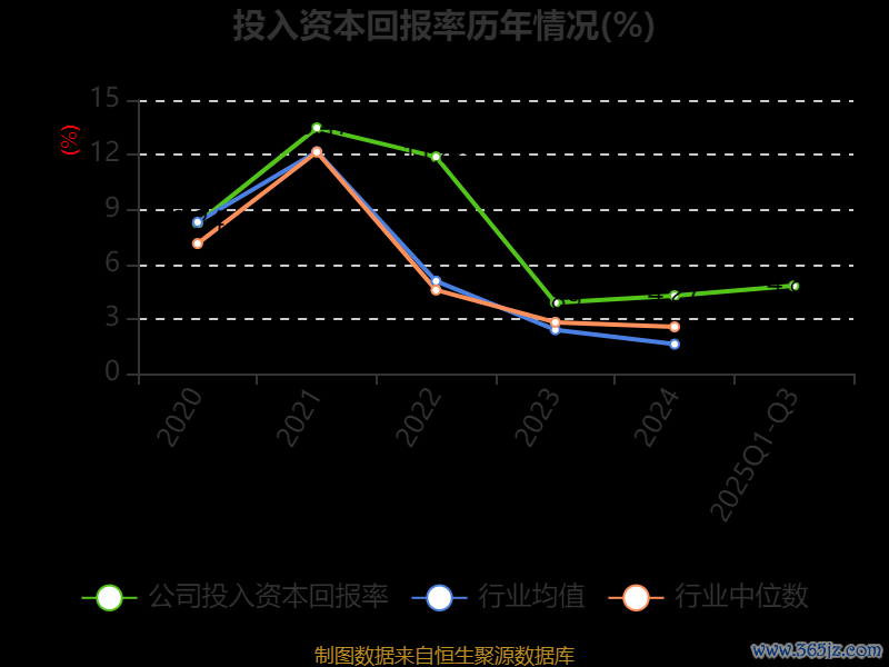 盈利能力方面, 2025年前三季度公司加权平均净资产收益率为7.41%,同比上升4.94个百分点。公司2025年前三季度投入资本回报率为4.81%,较上年同期上升2.61个百分点。