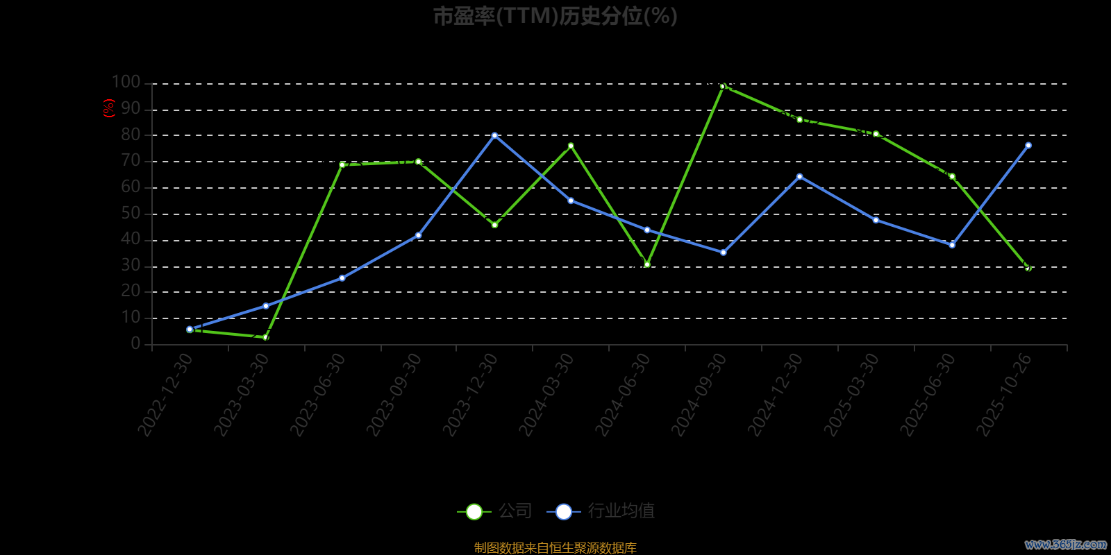 市盈率、市净率为负时,不显示当期分位数,会导致折线图中断。