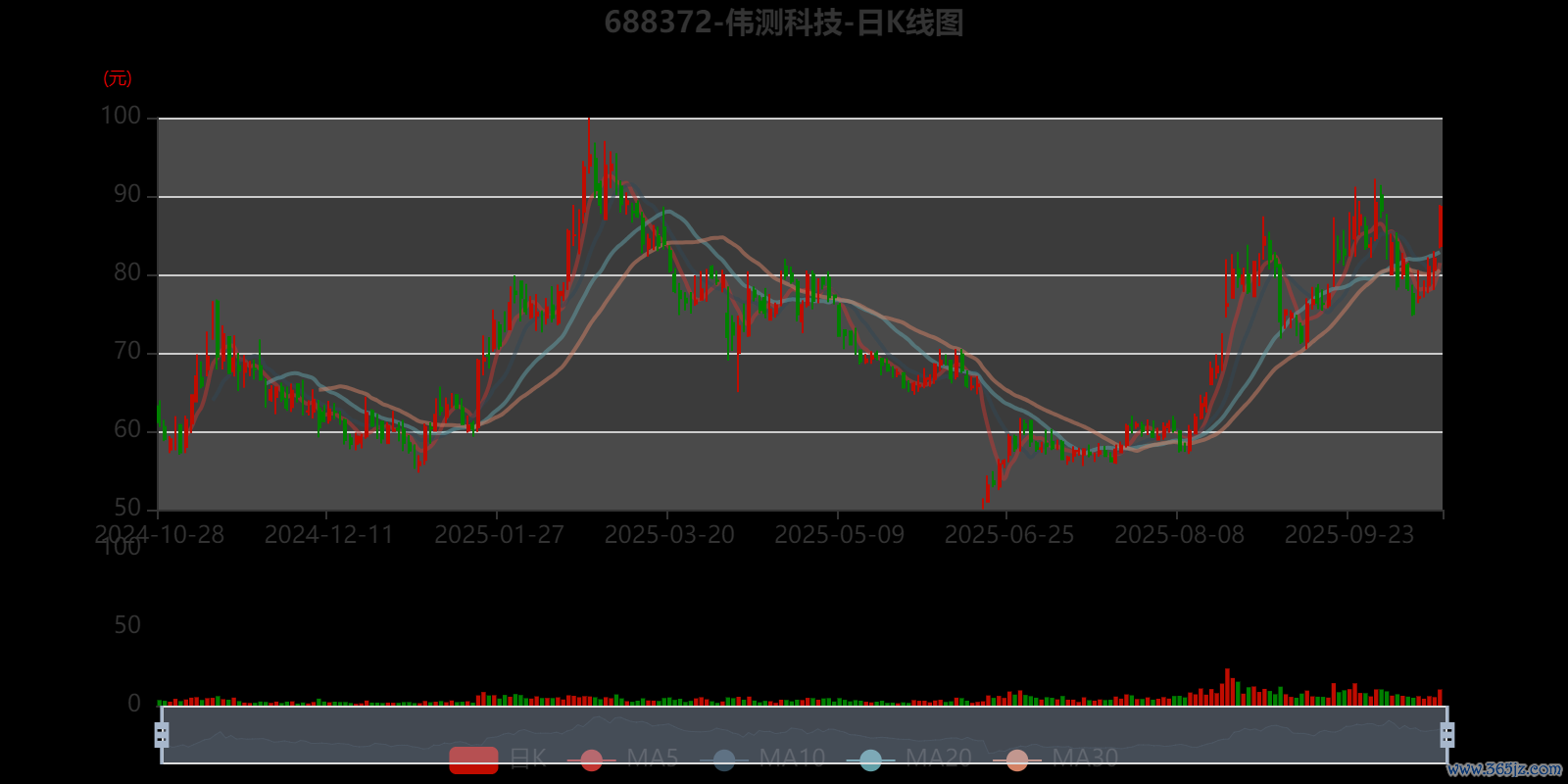 以10月24日收盘价计算,伟测科技目前市盈率(TTM)约为49.13倍,市净率(LF)约4.63倍,市销率(TTM)约9.3倍。